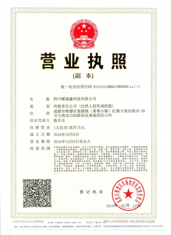 四川曜诚鑫科技有限公司”成立于2016年10月,注册资金2000万元,是由“国家双创示范基地”、“天府创业创新基地”郫都区菁蓉镇引进的首批高科技企业,公司主力从事智能化设备的开发及应用,已先后服务于政府、房地产、国企以及中小企业。 “嗨充”智能充电系统解决方案,是我公司新近开发的新项目和技术,整体技术全部由我公司设计完成,完全具有自主知识产权(现正在申请专利技术及知识产权),整体解决方案具有安全可靠、智能化程度高、新型全自动等特点,受到了菁蓉镇的高度重视,菁蓉镇为公司提供全面的政策优势和产业优势,将致力于打造安全智能充电系统整体解决方案提供商。